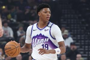 本场比赛,爵士今年5号秀贝利发挥不错,进攻端打得很果断,一手单打撤步三分看起来很自信。
