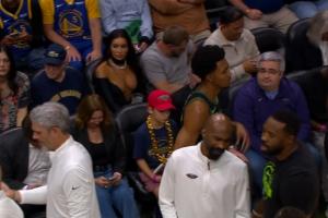 小詹也来啦!布朗尼披挂上阵三分张手就有 詹姆斯场下开心庆祝