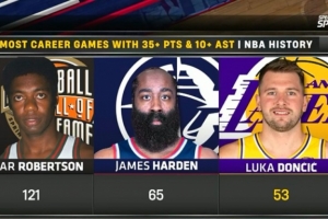 26岁271天!东契奇单场至少40分10助5三分 湖人队史最年轻做到